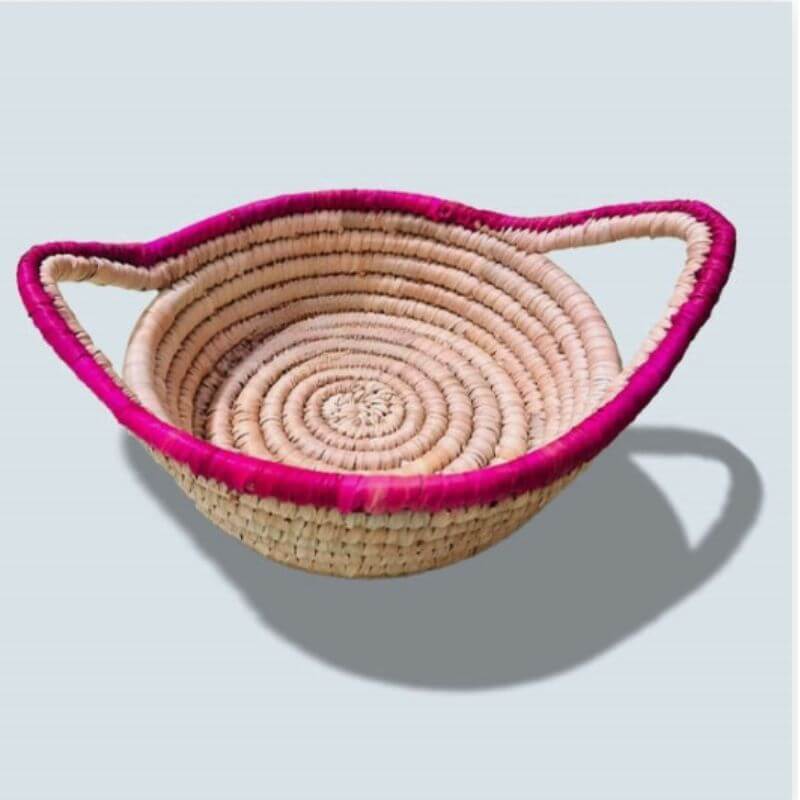 | Description | This Date Leaf Decorative Basket is handwoven from natural date palm leaves, featuring sturdy built-in handles and a contrast-colored edge for added style. Eco-friendly and durable, it is ideal for serving bread, fruits, or snacks on the dining table. A perfect blend of functionality and rustic handcrafted charm for any home. |