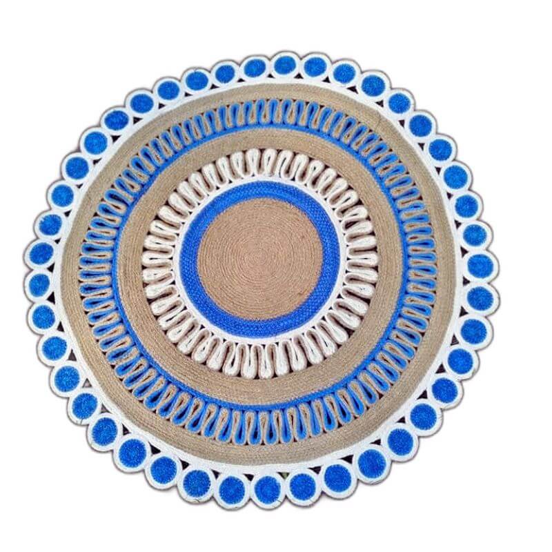 | Description | Woven from golden jute fiber, this round mat showcases a striking three-color pattern for a modern rustic look. Durable and eco-friendly, it offers a slip-resistant surface perfect for entryways or as a decorative accent. Each piece reflects skilled, sustainable craftsmanship with vibrant, lasting style. |