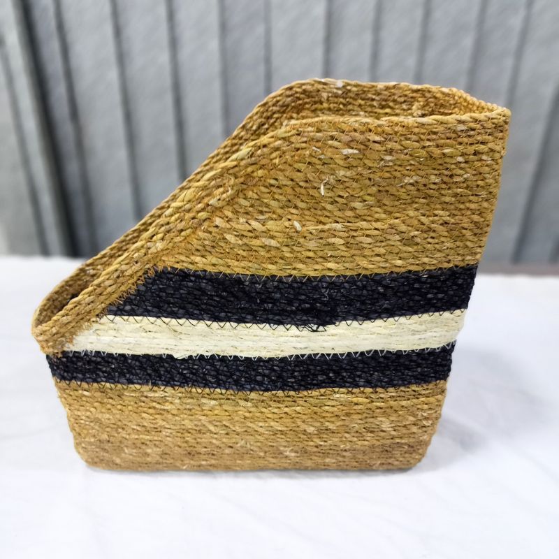 | Description | Crafted from natural seagrass with bold black and white accents, this handwoven file holder combines eco-friendly materials with modern style. Its sturdy design keeps documents organized and upright on any desk. Artisan-made with sustainable practices, it offers a unique blend of rustic texture and contemporary flair, making functional storage both elegant and earth-conscious. |